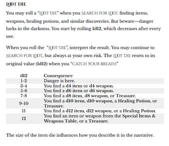 Rich random tables that generate thousands of unique combinations of rooms, dangers, creatures, and items.